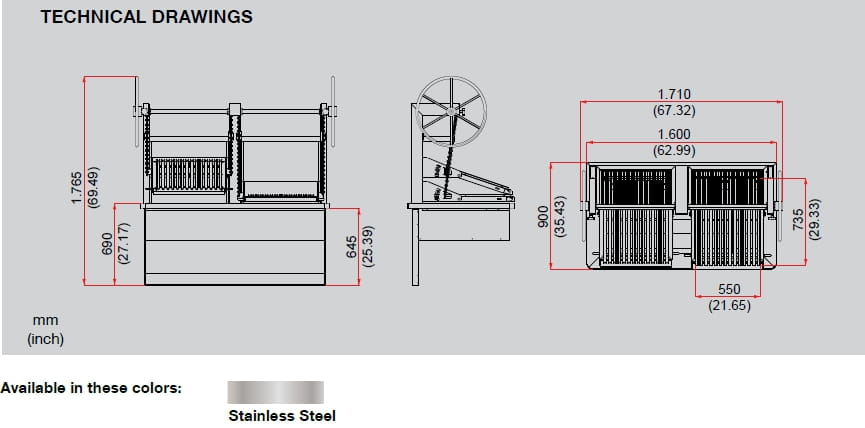 Wymiary rusztu głównego: x2 550 x 735 mm