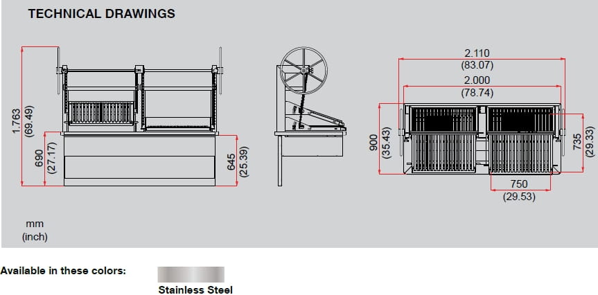 Zbudowany jak czołg, aby zapewnić długą żywotność w trudnych warunkach użytkowania komercyjnego. Palenisko wykonane jest z ognioodpornych cegieł szamotowych. Cegły te zapewniają również akumulację ciepła, zapewniając równomierną temperaturę na powierzchni grilla. W całym produkcie zastosowano stal nierdzewną o dużej grubości, co zapewnia długą żywotność i stabilność.