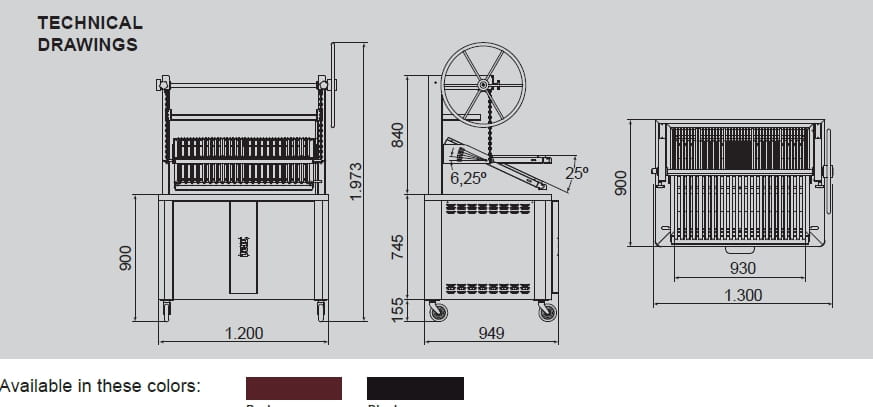 Można go wyposażyć w elektryczny rożen do grillowania kurczaków, prosiąt itp. W takim przypadku można mieć cały grill jako rożen lub cały grill jako tradycyjny grill, albo rozdzielić je w konfiguracji 50/50.