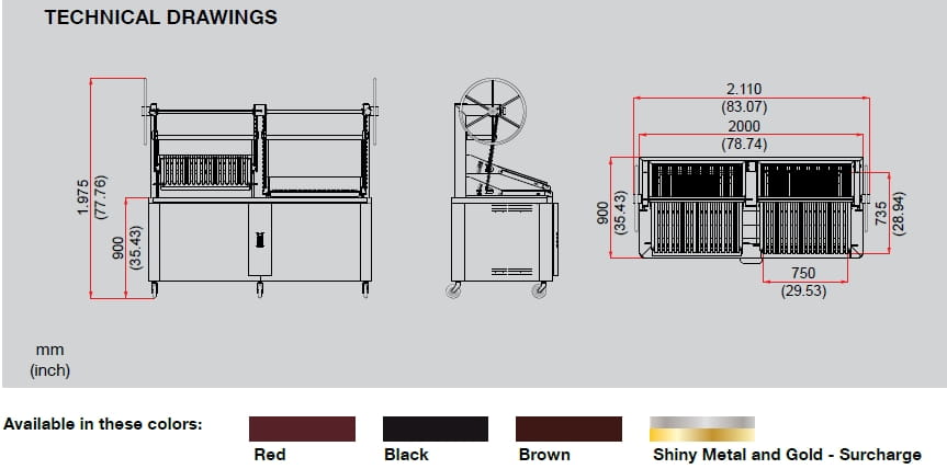 Wymiary rusztu głównego: x2 750 x 735 mm